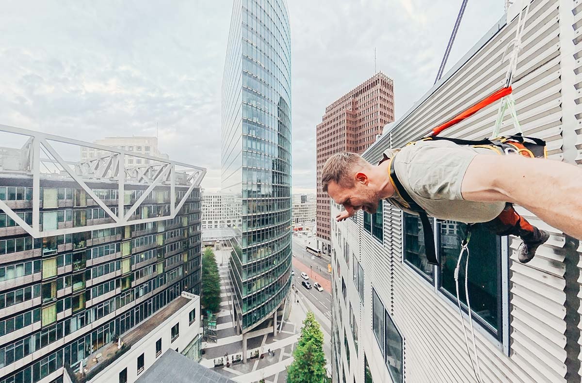 Deinen ersten Kick holst du dir beim über die Kante kippen lassen. "Face down" siehst du der Herausforderung direkt ins Auge. Dann geht’s mit Blick nach unten satte 40 Meter senkrecht in die Tiefe. Ganz nach Lust und Mut bestimmst du deine Geschwindigkeit selbst. Beim House Running am "Das Center Berlin" beweist du großen Mut und brichst mit etwas Glück den Laufzeitrekord.