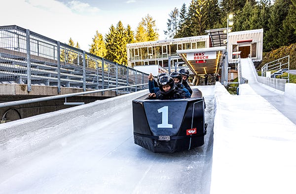 - Fahrt im Bob Raft bei 90 km/h durch den Olympia Eiskanal in Innsbruck