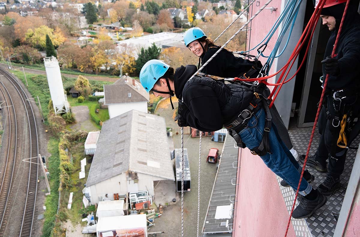 Hier stürzt ihr euch zu zweit in ein wagemutiges Abenteuer! Denn beim House Running in Brühl bei Köln lasst ihr euch zusammen über die Dachkante kippen. Ihr seilt euch parallel 50 atemberaubende Meter in die Tiefe. Der ehemalige Getreidespeicher ist dafür wie gemacht und bietet die perfekte Location. Von hier oben gibt‘s nämlich noch einen traumhaften Ausblick für euch on top.