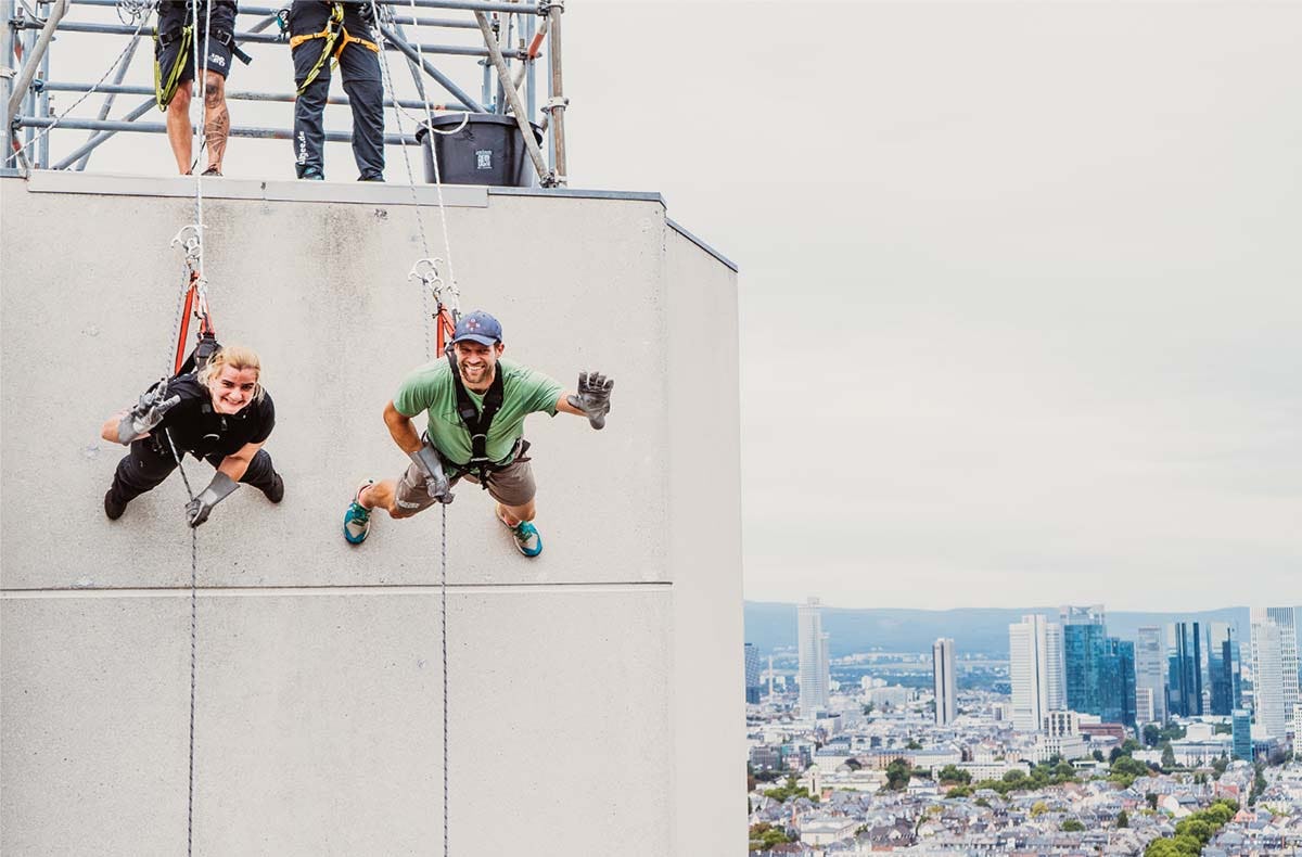 Stürze dich ins Abenteuer und seil dich an einem Hochhaus ab!