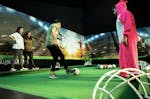 Entdeckt den neuesten Fußball-Trend und stürmt zu sechst das XXL-Billardfeld!