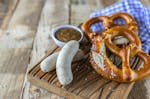 - Mit Original Weißwurstsenf und ofenfrischer Brez’n