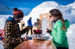 Begebt euch auf Entdeckerreise in eine frostige Welt zum Fondue essen im Iglu in Innsbruck-Kühtai.