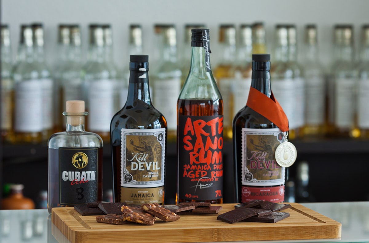 - Fachlich kommentierte Verkostung von 6 Rumsorten und 6 Schokoladensorten