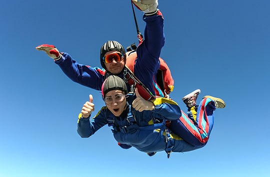Es sind Augenblicke für die Ewigkeit! Fest verbunden mit einem erfahrenen Tandem-Master springst du aus einer Höhe von bis zu 4.000 Metern ins Nichts. Du fühlst dich frei und rast mit Freifallgeschwindigkeit der Erde entgegen. Etwa 50 Sekunden später zieht der Tandempilot die Reißleine und du gleitest am Schirm durch die Luft. Genieße die atemberaubende Aussicht auf die wunderschönen Landschaften Österreichs, während du durch die Wolkendecke schwebst. Allmählich kommst du dem Boden immer näher, während das Adrenalin noch durch deine Adern pumpt. Eine unglaubliche Erfahrung und du wirst es kaum abwarten können sie noch einmal zu machen!