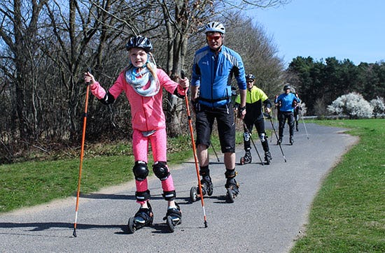 Ganz gleich ob Kopfsteinpflaster, glatter Asphalt oder Feldweg – dank der luftgefederten Rollen der Skikes sind Sie einfach nicht zu bremsen. Im Einsteigerkurs erlernen Sie die vom Skating entlehnte Lauftechnik und den Einsatz der Stöcke. Nachdem Sie die ersten Schritte gemeistert haben, ist es nicht mehr weit bis zur ersten Tour. Am Schluss des Kurses können Sie bereits den glatten Asphalt verlassen und Ihre erste Runde im leichten Gelände absolvieren.