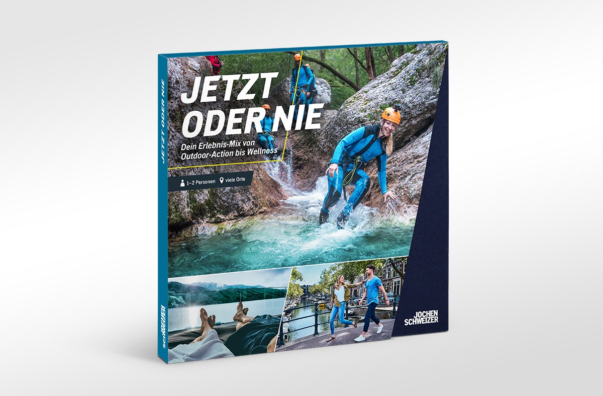 Diese Box bietet dir die Wahl! Erlebe Adrenalin pur beim Canyoning oder spüre die Power beim Motorboot fahren. Genieße entspannende Stunden im Spa oder lass dich beim Fotoshooting von deiner besten Seite ablichten. Genieße ein Dinner in the Dark oder schweb mit dem Gleitschirm durch die Lüfte. Wähle dein Abenteuer – denn das Leben ist zu kurz für Langeweile!