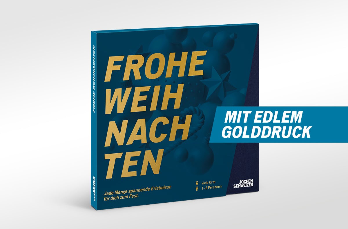 Lass den Weihnachtszauber wirken! Mit der Geschenkbox Weihnachten für Zwei bescherst du Erlebnis pur. Festlich verpackt warten jede Menge Action und Genuss unterm Weihnachtsbaum.