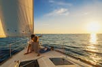 Tagsüber ist auf dem Wasser häufig ganz schön was los. Darum nutzt du bei deinem Sunset-Segeltörn die ruhigeren Abendstunden, um mit deinem erfahrenen Skipper auszulaufen. In vielen Segelrevieren kommt mit den fallenden Temperaturen nochmal eine konstante Brise auf. Genieße die Idylle, wenn das Licht der untergehenden Sonne deine Rückfahrt verzaubert und du nach 2 Stunden ohne Mast und Schotbruch wieder am Liegeplatz anlegst.