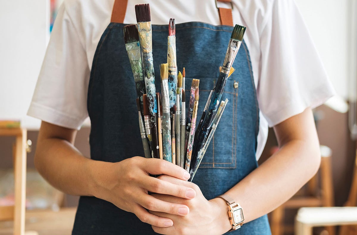 - Materialien wie Pinsel, Farbe, Papier
