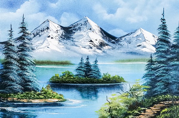 - Malen eines Landschaftsmotivs im Stil des Bob Ross oder Malen eines Blumenmotivs/Stilllebens nach Gary Jenkins mit Ölfarbe