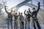 Erlebe ein einzigartiges Abenteuer in Europa! Der Brückensteig in Solingen über der Müngstener Brücke - Deutschlands höchster Eisenbahnbrücke. Auf dieser geführten Tour erklimmst du den imposanten Stahlbogen Schritt für Schritt und bekommst dabei spannende Einblicke in die Geschichte der Brücke. Ein durchlaufendes Sicherungssystem sorgt für maximale Sicherheit, während dich dein Guide über Funkgerät mit allen wichtigen Infos versorgt.