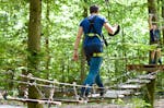 Erlebe im Hochseilgarten in Veilbronn den ultimativen Nervenkitzel beim Klettern durch den Wald! Trau dich und entdecke neue Abenteuer.