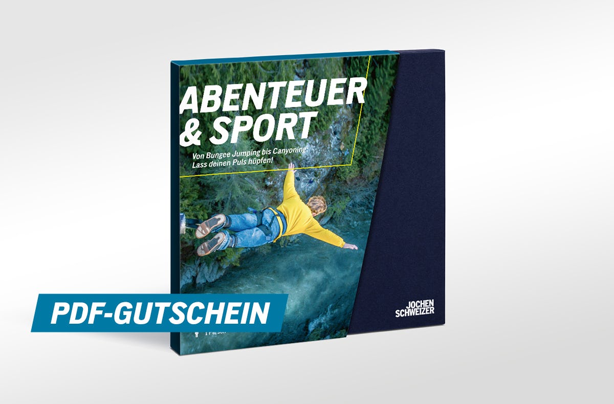 Schneller, höher, weiter, tiefer! Unter dem Deckel Deiner Geschenkbox Abenteuer & Sport brodelt ein Vulkan voller Adrenalin. Schenke eine actiongeladene Eruption von Canyoning bis Bungee Jumping.