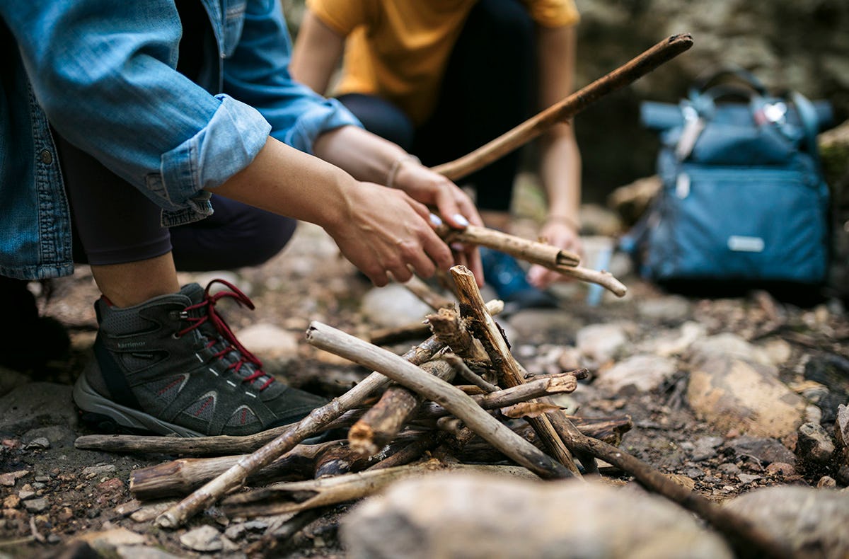 - Grundlagen wie Feuer machen mit natürlichem Zünder ohne Feuerzeug