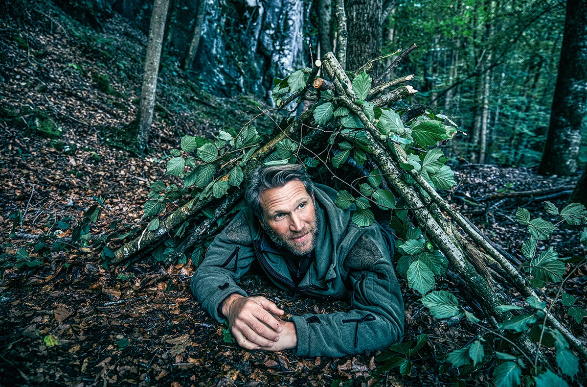 Vor Einbruch der Dunkelheit wirst du unter Anleitung selbst eine Notunterkunft errichten, in der du dann übernachten wirst.