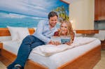 In der größten Saunalandschaft der Welt begebt ihr euch auf eine Reise zu den schönsten Orten dieser Erde. In der VitalTherme & Saunen befinden sich derzeit 28 Themensaunen: Entspannt in der Meditationssauna zu sanften Tönen der Klangschale, atmet Kräuteraromen in der Villa Toscana oder genießt ein pflegendes Solepeeling im Salzsteinzimmer. In der Therme lasst ihr den Alltag hinter euch und genießt die faszinierende Verbindung aus exotischem Ambiente und gesundem Thermalheilwasser. Und wenn ihr genug entspannt habt, könnt ihr im Wellenbad und in der riesigen Rutschenwelt des Spaßbades GALAXY auf 27 Rutschen beweisen, dass ihr mit allen Wassern gewaschen seid.