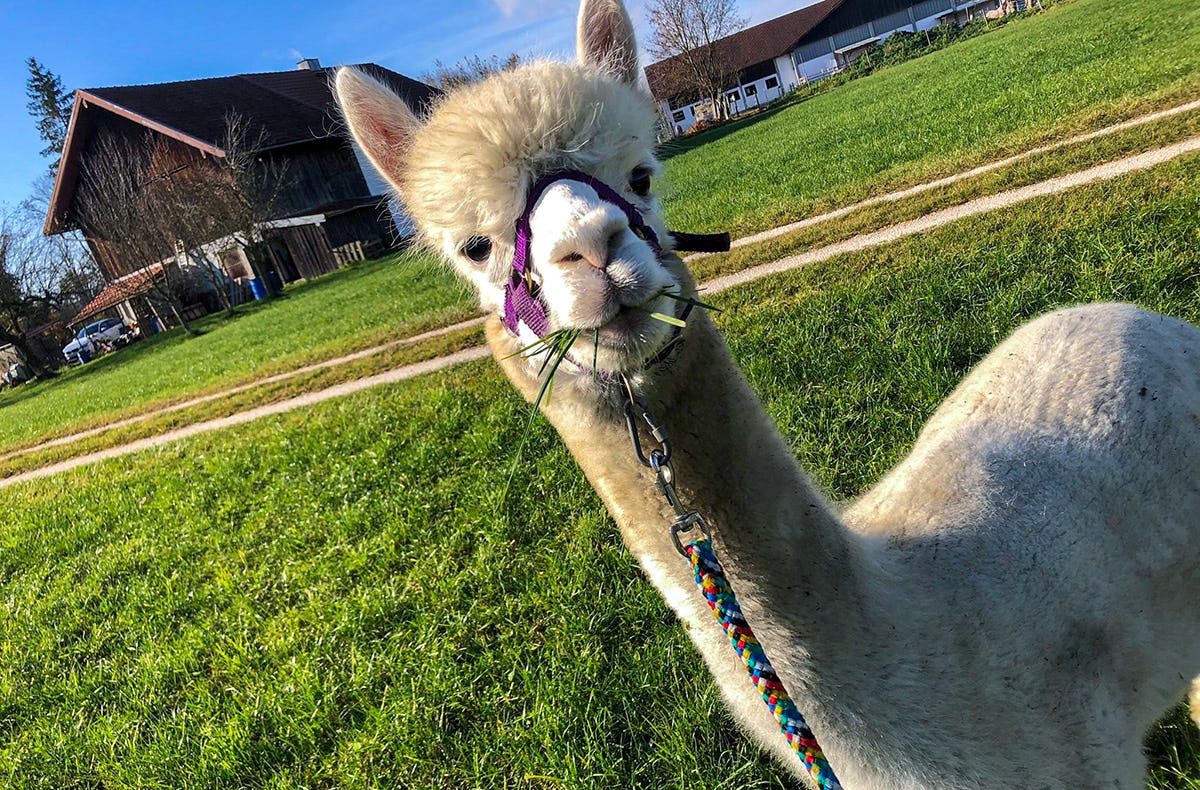 Vergiss die kalte Couch daheim und zieh dich an für eine Alpaka Wanderung in Taufkirchen.