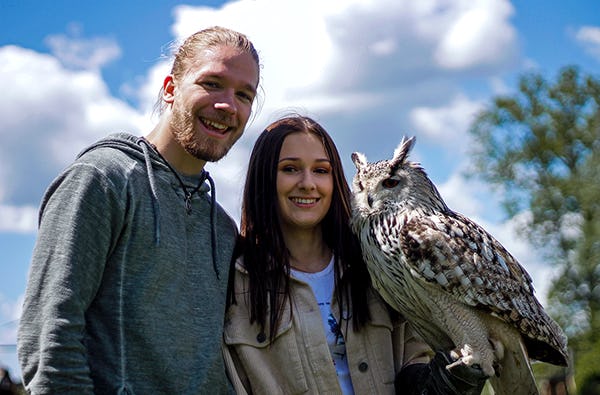 Beim Falkner Erlebnis in Medebach bist du hautnah dabei, wenn Bussarde oder Falken gefüttert und trainiert werden. Spüre beim Halten, wie sich die kräftigen Krallen in deinen Handschuh bohren. Trage das majestätische Tier und versuche ihm selbst einen vorgegebenen Befehl zu erteilen. Die Falken warten nur darauf dich kennenzulernen.