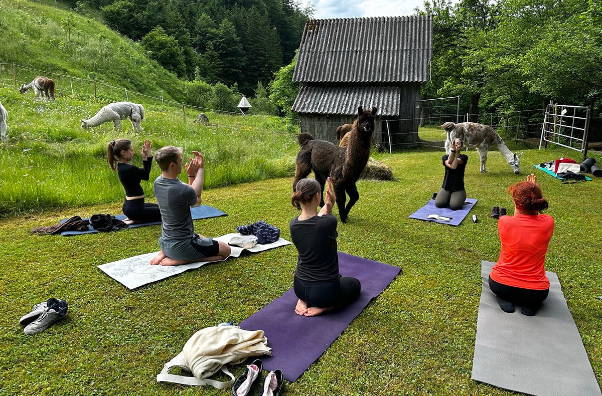 - 60-90-minütige Yoga-Einheit auf der Lamaweide mit zertifizierter Yogalehrerin