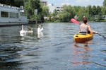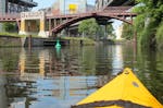 Fahrt durch den Landwehrkanal. Gepaddelt wird entlang der Grundfesten der Metropole, wo die Elemente Natur und Stadt aufeinandertreffen.