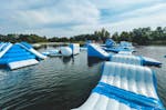 - Riesiger, schwimmender Wasserpark mit verschiedenen Elementen (Klettern, Springen und Rutschen)