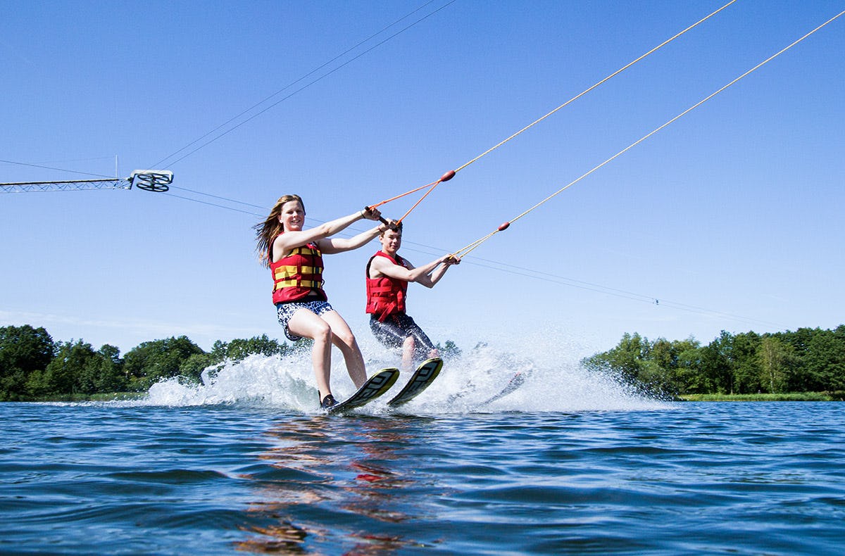 Halte dich gut fest und erobere den See beim Wasserski fahren!