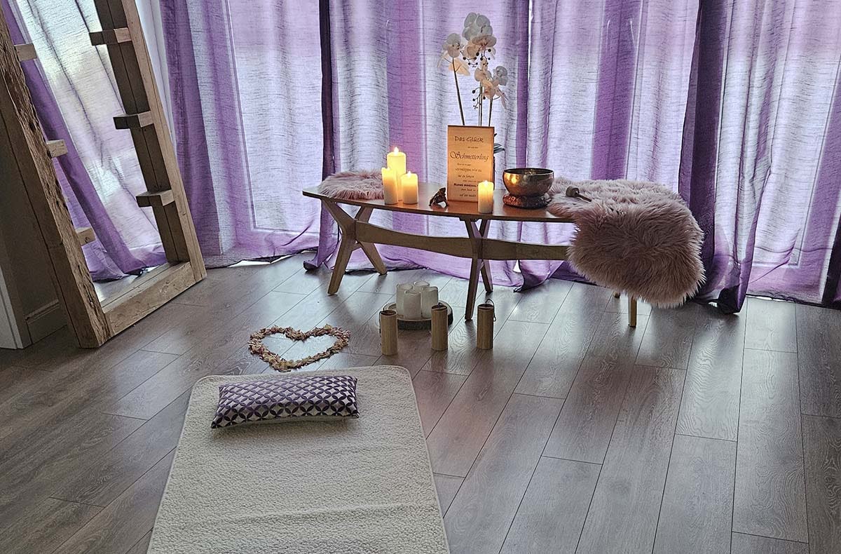 - Begleitung durch Klangschalen und Kerzenlicht während der Sitzung